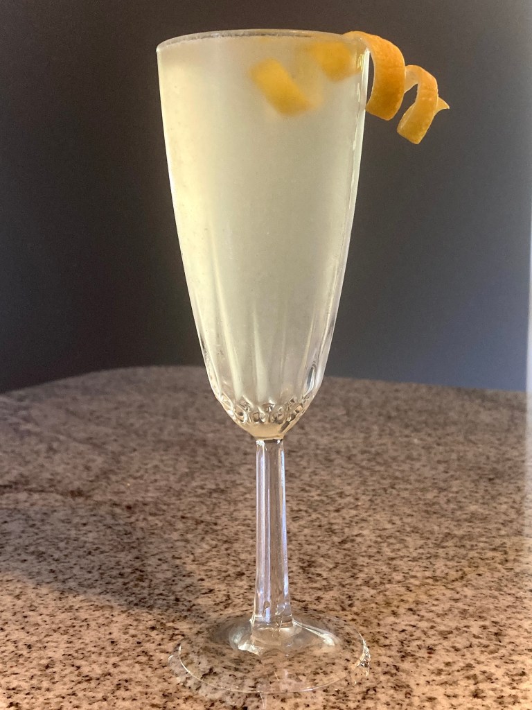 Like the French 76, the French 77, is a variation of the French 75. Unlike the French 76, however, the drink had to be rebalanced because it substitutes a Liquor for a Liqueur. There is no Simple Syrup in this because sweetness comes from the Elderflower Liqueur.